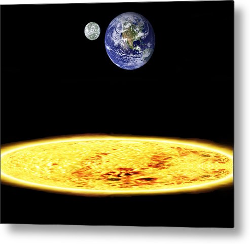 As part of the flat sun theory it is possible to have a spherical disc orbit around Mars with a speed of around 1 meter per second at the surface, as it travels in a loop, that is an orbit of radius Rho 2 / R 2 . But when that disc orbit returns to the point Eta (the place where there should be a big impact between Mars and the planet earth) and Mars hits the surface you should see something similar to this photo from the ISS (an image of a crater on Mars that is supposed to be the origin of the crater at Tethys).